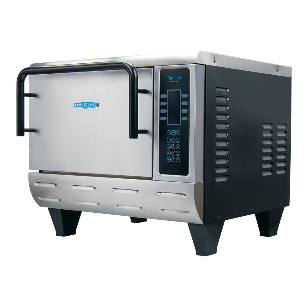 The TurboChef TORNADO2 countertop convection oven quickly cooks product, enabling operators to expand their menus to include a variety of made-to-order dishes, from toasted sandwiches to frozen pizzas. A variable-speed impinger system cooks food rapidly while its independently controlled element browns products for optimal taste and visual appeal. As many as 128 recipes can be stored in the impinger oven’s memory, which can be updated through a smart card interface. A manual snooze mode puts the unit in a low-power state to save energy. For ventless use, this oven has a recirculating catalytic converter.