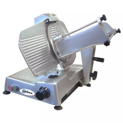 Great for light to medium operation, the Univex 6612M manual slicer has a 12-inch, hollow-ground blade that operates at 345 revolutions per minute, enabling it to be used for slicing a limited amount of cheese. The slice thickness is adjustable to 1⁄2 inch using a manual control knob, and the carriage and built-in sharpener are removable to aid in cleaning. Constructed of polished, anodized aluminum, the slicer’s body is durable, and the controls are protected since the drip tray deflects liquids. To effortlessly control the Univex 6612M manual slicer, it has on/off push buttons.