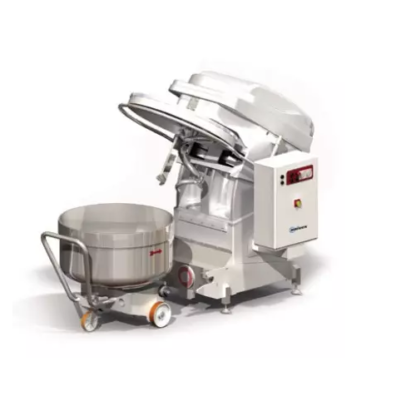 Designed for industrial bakeries, pizzerias or commissaries, these sturdy, reliable mixers feature dual motors and an intuitive control panel with rubber gaskets. The bowl is held in place by a high-powered electromagnetic system for reducing noise and wear during kneading. Available in models suitable for 80 up to 300 kg of dough.