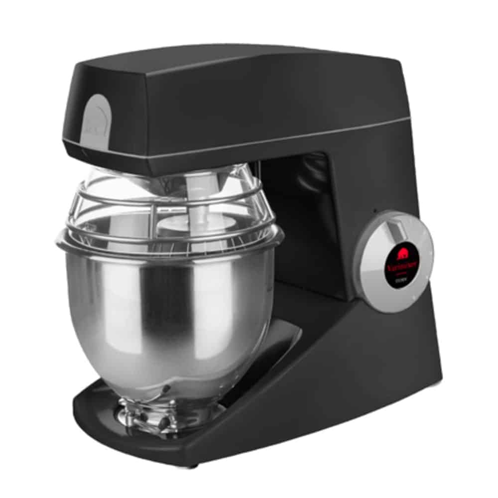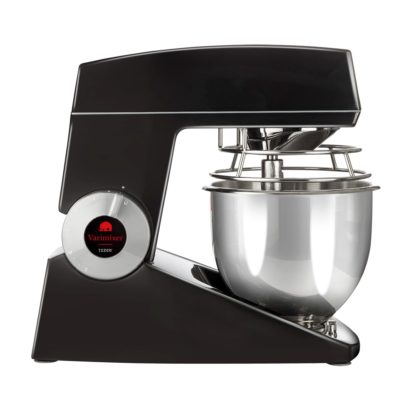 For mixing baking ingredients and mashing potatoes, the Varimixer V5-B commercial planetary mixer holds as much as 5 quarts of dry and wet ingredients in its bowl. Users control the planetary mixer with two rotary knobs-one on each side of the unit. It’s able to perform speed ranges as low as 78 RPM and as high as 422 RPM depending on the recipe, and it uses high-torque, direct-drive transmission. For consistent results, it has grease-lubricated, anti-friction ball bearings, and its planetary head is permanently lubricated for smooth movement. Despite the high RPM, its 0.4-horsepower motor keeps the machine quiet throughout operation.