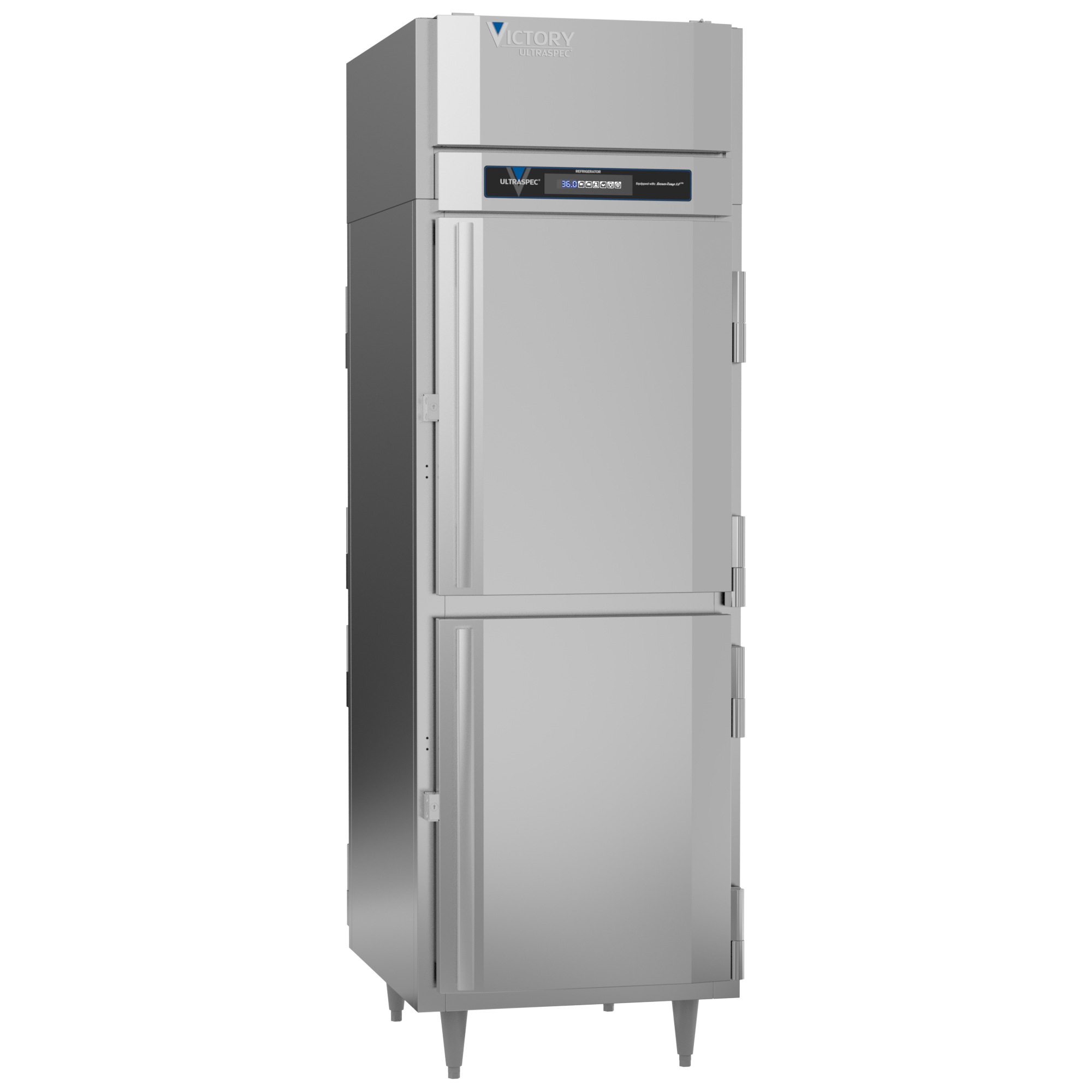 Victory Refrigeration, FS-1D-S1-EW-PT-HD-HC, UltraSpec™ Series Freezer, Pass-thru, one-section, self-contained refrigeration, 26.2 cu. ft. capacity, (4) wide half height solid hinged doors, (3) silver freeze (chrome-style) shelves, stainless exterior & interior, standard depth cabinet, TOUCH POINT™ electronic temperature control/indicator, LED lighting, expansion valve technology, Santoprene door gaskets with 2 year warranty, stainless steel breakers, 3/4 HP, UL, cUL, UL EPH Classified, MADE IN USA