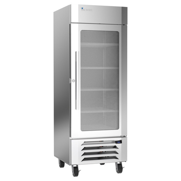 UltaSpec Series Merchandiser Freezer, Reach-in, one-section, self-contained refrigeration, 25.5 cu. ft. capacity, (1) full height hinged glass door, (5) epoxy coated shelves, stainless steel exterior, aluminum interior, standard depth cabinet, electronic LED lighting, expansion valve technology, Magnetic door gasket with 2 year warranty, stainless steel breakers, bottom mounted compressor, 3/4 HP, cULus, UL EPH Classified, UL-Sanitation, MADE IN USA