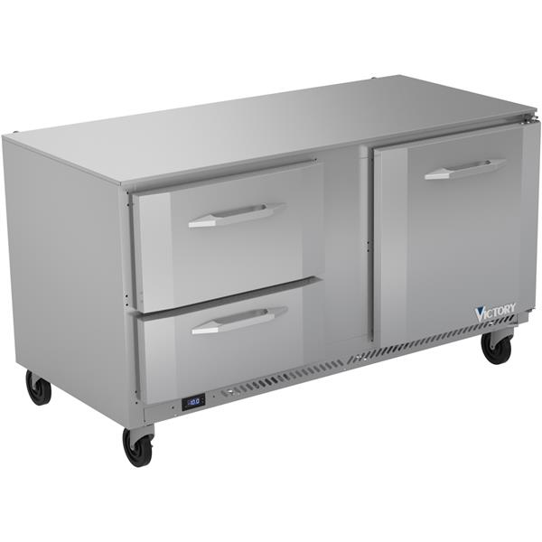 Victory Refrigeration VUFD60HC-2 60” 2 Section Undercounter Freezer with 1 Right Hinged Solid Door 2 Drawers and Front Breathing Compressor