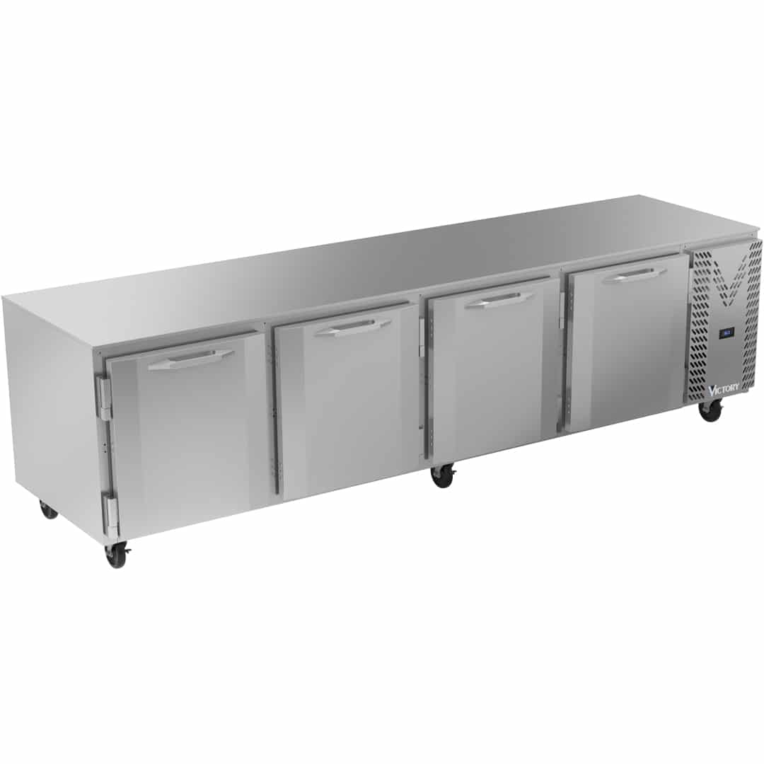 Transform the space under your counter into a massive horizontal cold storage solution with the Victory Refrigeration VUR119HC Undercounter Refrigerator with 40.12 cubic feet of storage capacity and electronic controls. This unit has stainless steel front, top, and sides combined with galvanized steel back and bottom for an impressively durable workhorse that will last for many years.