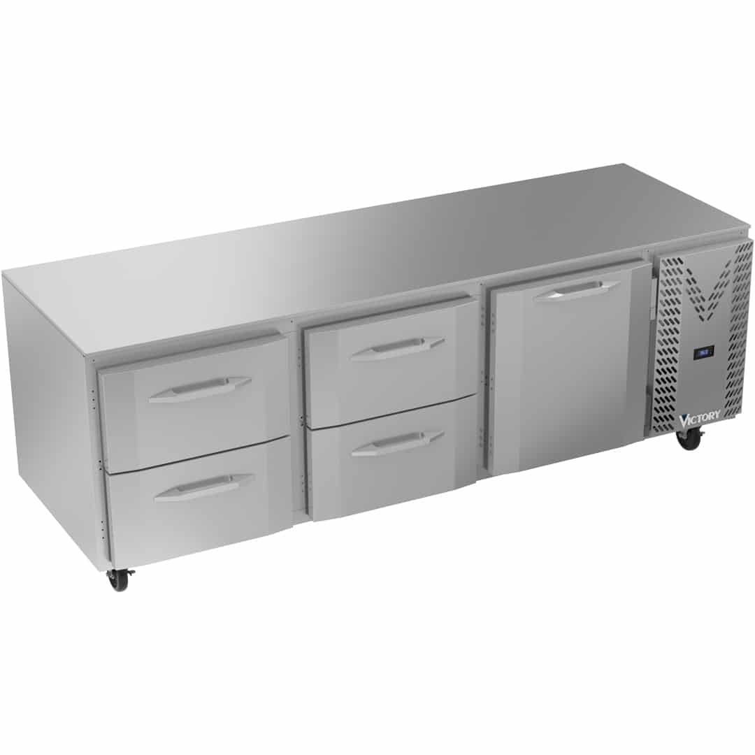 If you need an Undercounter Refrigerator for daily ingredients or merchandise but don’t have extra floor space for it, the Victory Refrigeration VURD93HC-4 can fit 39.8 cubic feet of cold storage space right beneath your counter. This unit won’t rust on the outside or corrode on the inside, thanks to the stainless steel and aluminum construction. The evaporator coil also has an additional layer of epoxy that makes it much stronger even with daily use.