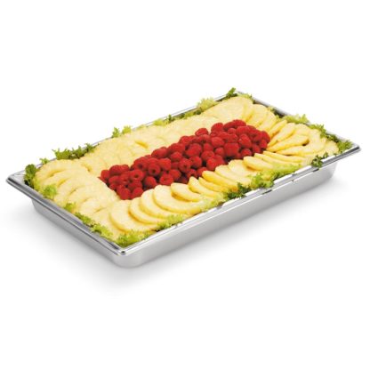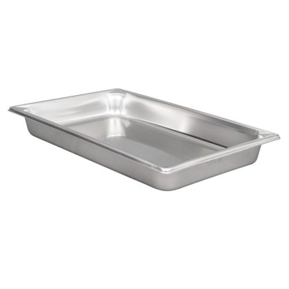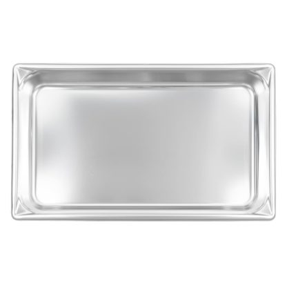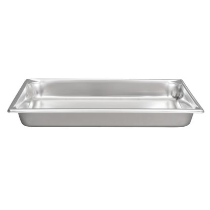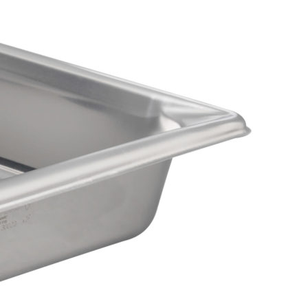 The Vollrath 30022 Super Pan V full-size hotel pan holds 8.3 quarts to the rim. Each of the strong corners is designed to simplify pouring. The smooth curves make it easy to remove all the product from the interior, enabling it to be cleaned easily. This Vollrath 30022 Super Pan V full-size food pan is made of stainless steel to provide corrosion, dent, and scratch resistance. It has a bright finish that is perfect for customer-facing applications.