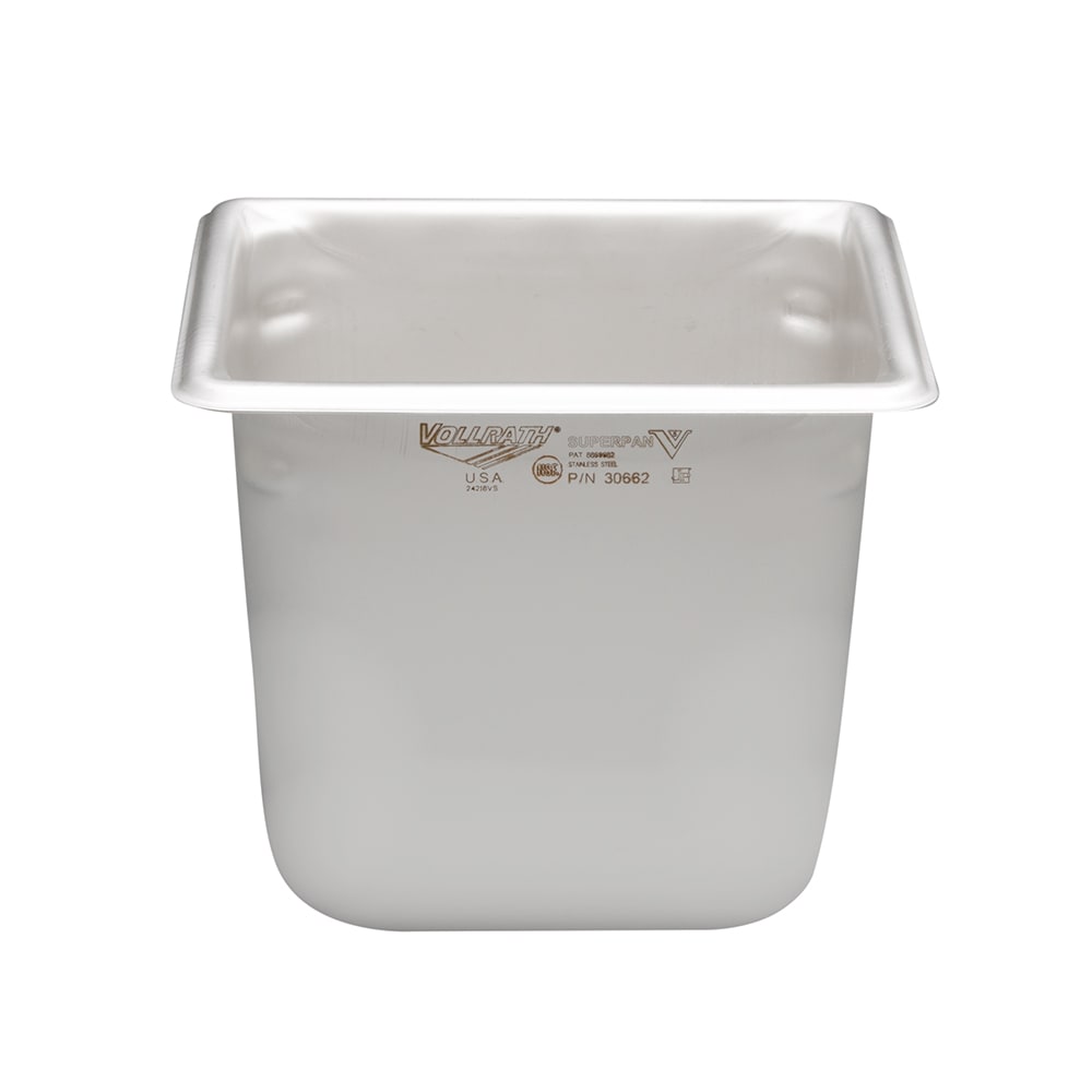 The Vollrath 30662 Super Pan V sixth-size hotel pan has a bright finish that provides establishments with a clean feel. Constructed of corrosion-resistant, heavy-duty stainless steel, it is easy to clean. Smooth curves also make cleanup simple by preventing food from getting stuck. The contents can be poured smoothly out of the Vollrath 30662 Super Pan V sixth-size food pan with the strong, reinforced corners.