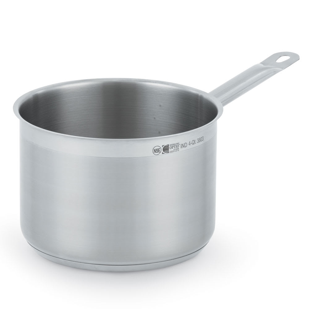 The Vollrath 3802 Optio&trade saucepan features an ergonomic, hollow metal handle with an integrated hanging hole for storage. Because it’s constructed of 18/10 stainless steel, it can withstand heavy, repeated use without corroding or scratching. To keep heat and steam contained for even cooking results, this pan comes with a cover.