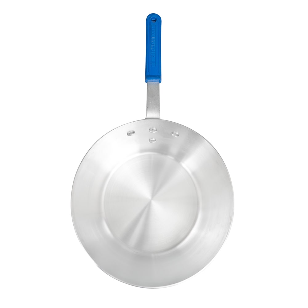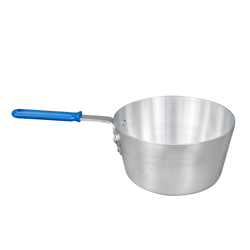 The Vollrath 4347 tapered saucepan holds seven quarts of product so chefs can boil, reduce, or simmer ingredients to create sauces. Made of aluminum alloy, this pan resists denting from impacts. Its natural finish delivers a professional look to kitchens, and its silicone handle doesn’t absorb heat, preventing users from burning themselves during cooking.