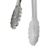 The Vollrath 47007 utility tongs are made of durable, 24-gauge stainless steel that resists corrosion to ensure a long lifespan. This versatile tool is useful for tossing salads, selecting self-serve dinner rolls, or tossing wings in sauce. It has a two-piece design and is 7 inches long.