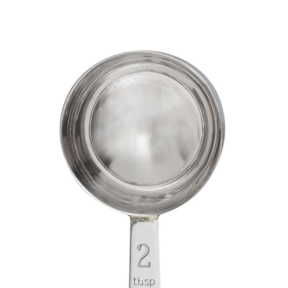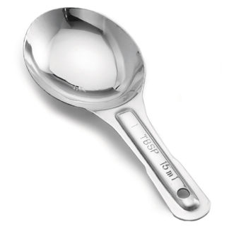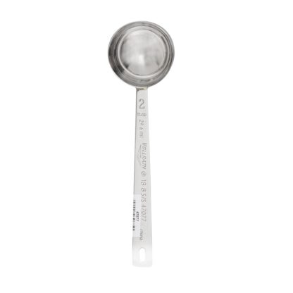 Measuring Spoon, 2 Tbsp,(30 ml), 6-3/4″ long, round, type 304 18-8 stainless steel, one-piece construction, stamped capacities, Imported