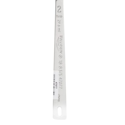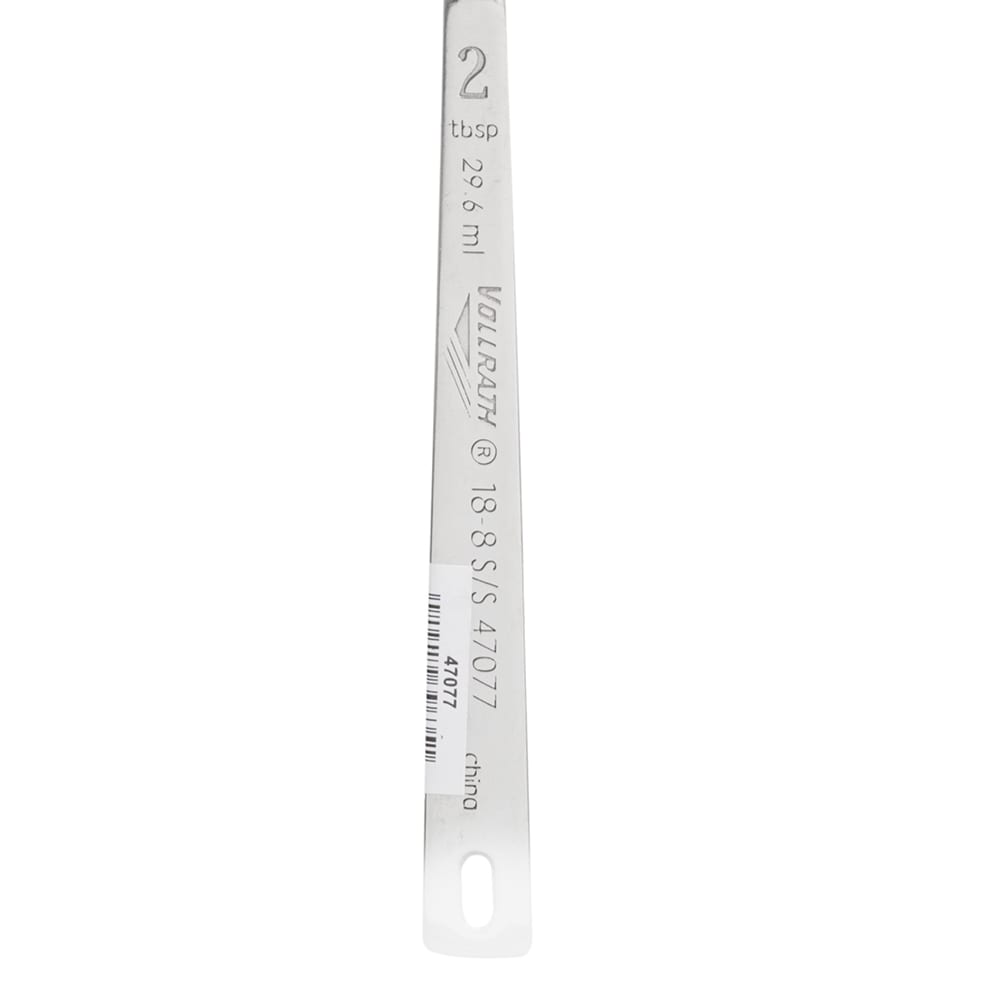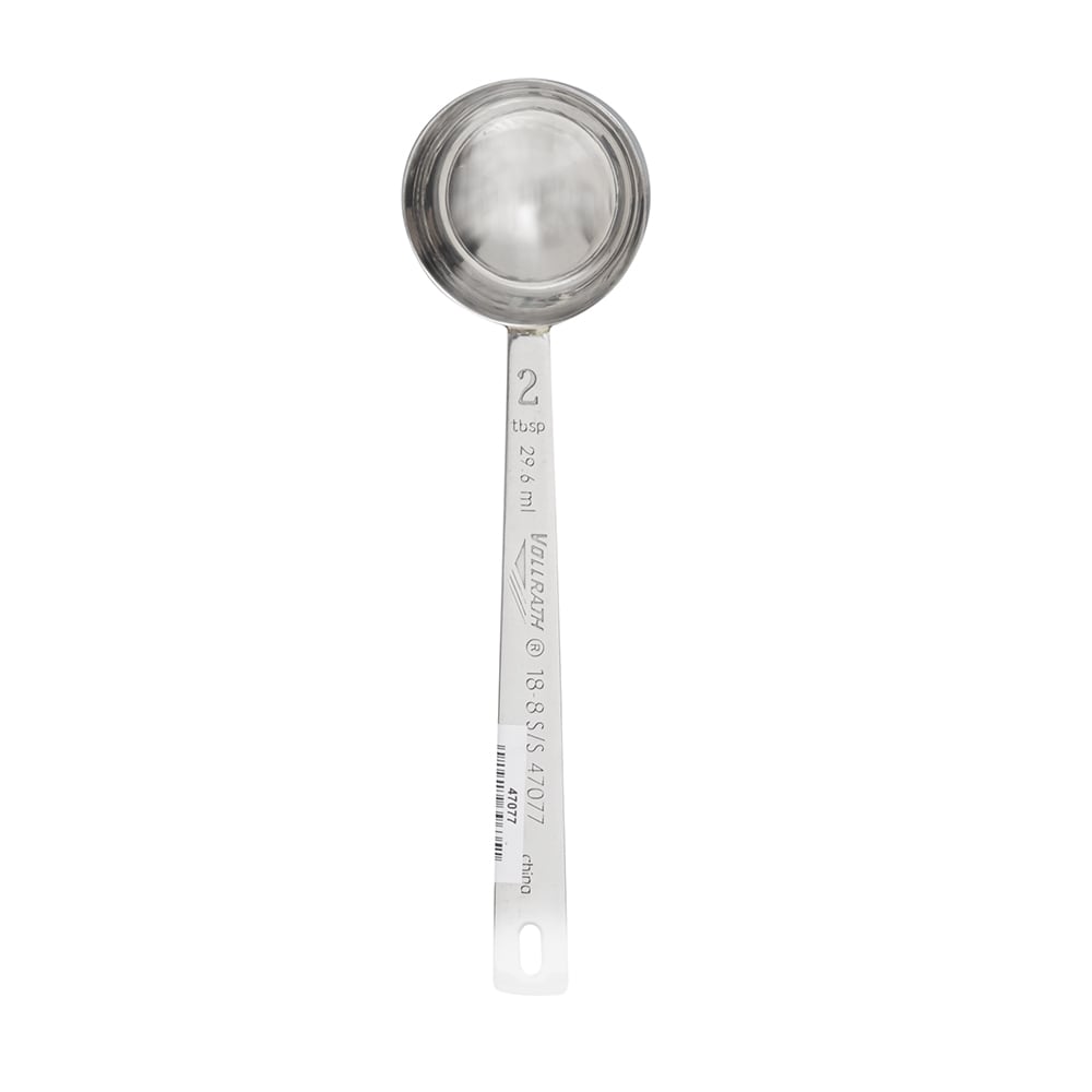 The Vollrath 47077 measuring spoon is stamped with a 2-tablespoon measurement unit to ensure operators make precise, consistent measurements when baking and cooking. Because it’s constructed of sturdy 18/8 stainless steel, it resists rust and scratches. It is designed with an integrated hole at the end of its handle, so users can hang it when it’s inactive.