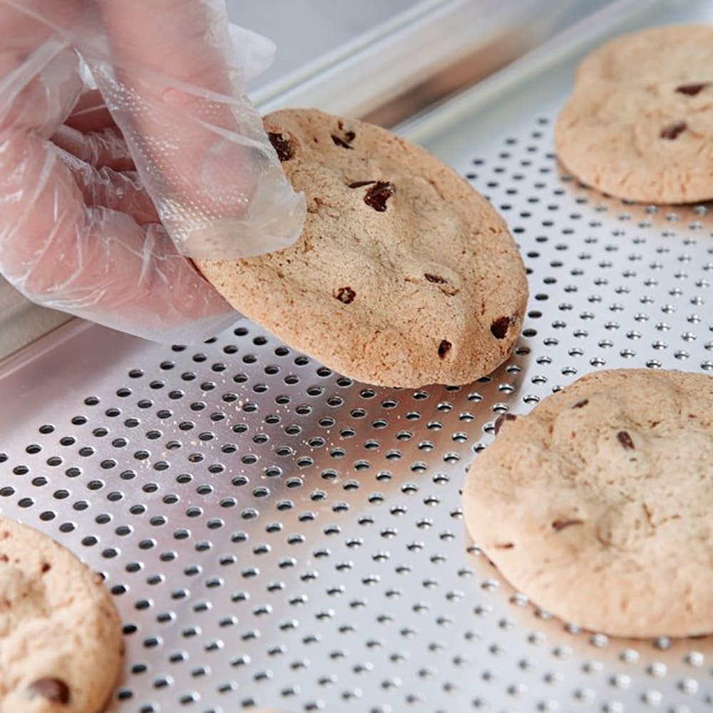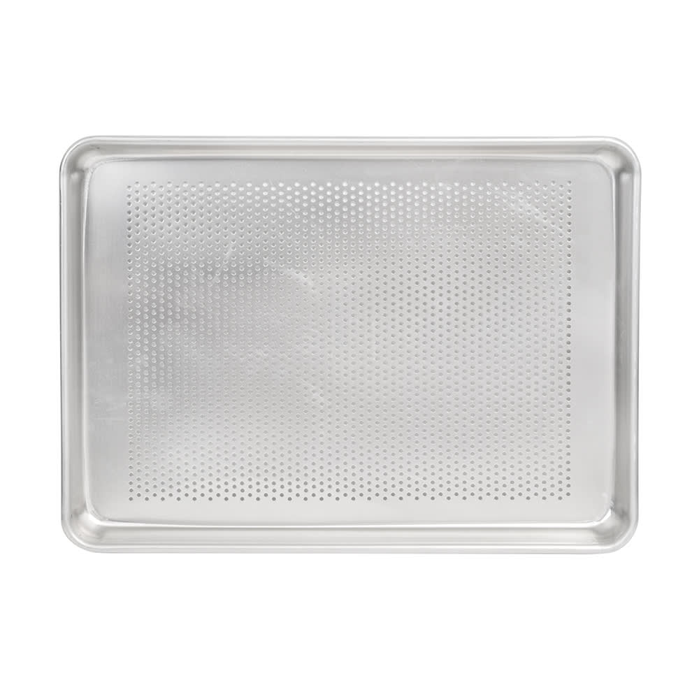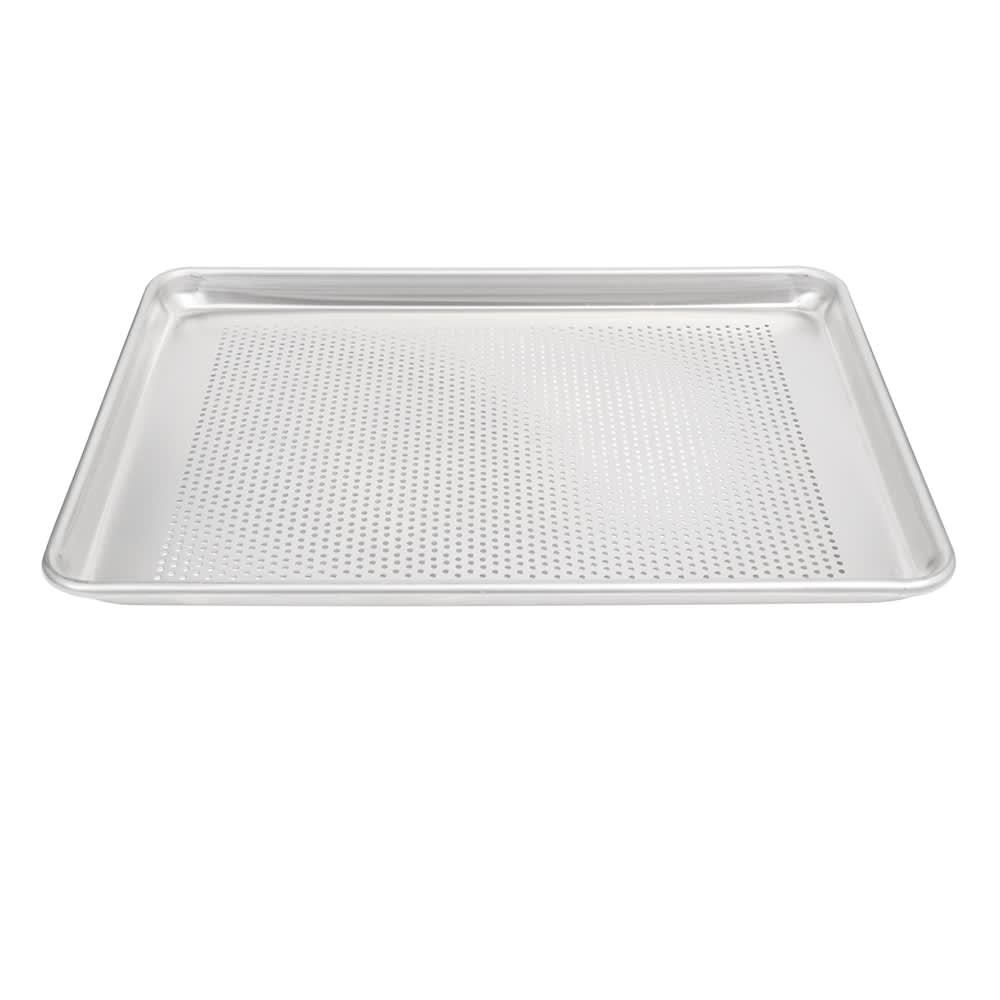 Sheet Pan, 1/2 size, 18″W x 13″D x 1″H (45.1 x 32.7 x 2.54cm), 18 gauge aluminum alloy, natural finish, perforated, Made in USA