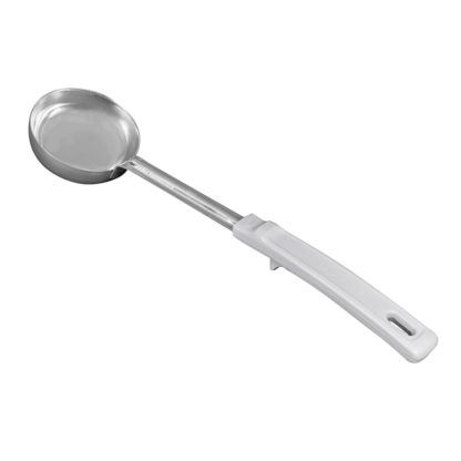 Spoodle, 4oz, solid, stainless color coded with gray Grip ‘N Serv plastic handle, equipped with all-natural antimicrobial, 13-1/2″ overall length, Made in USA