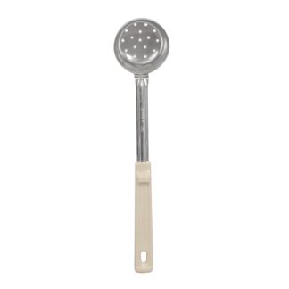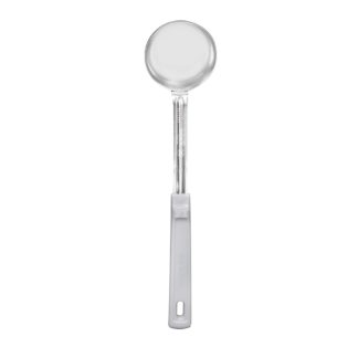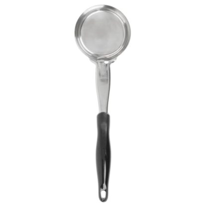 For consistent portion sizes, the Vollrath 6433620 spoodle has a 6-ounce capacity, which is printed on the unit. Its stainless steel bowl measures 311/16 inches in diameter, and it has a solid, round structure to dish out solid food items, such as meatballs, macaroni and cheese, and mashed potatoes. Users can comfortably grip the textured nylon handle, and it has an overall length of 133/4 inches to reach into food containers. To prevent it from slipping into food pans, it has a built-in stopper notch that can be placed against food pan edges. Because it resists temperatures as high as 450 degrees Fahrenheit, the handle won’t melt when stored on hot containers.