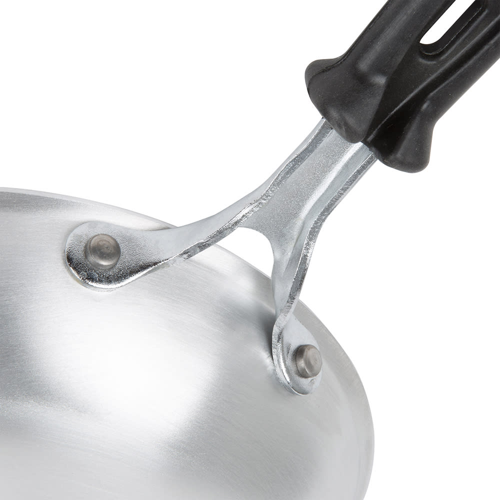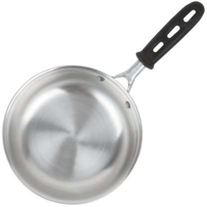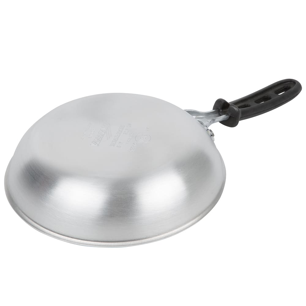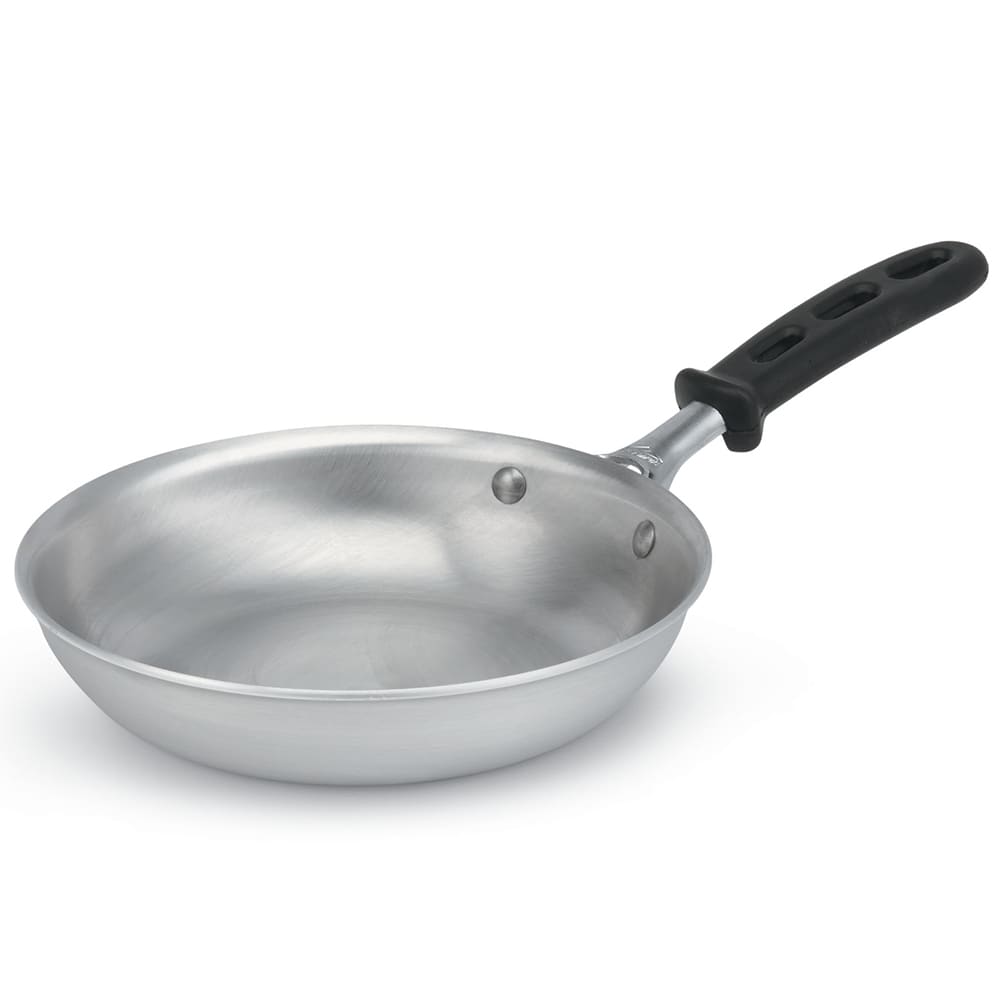 The Vollrath 67908 Wear-Ever frying pan is perfect for sauteing vegetables, reducing sauces, and melting chocolates. Along with its aluminum construction, the rivet system that connects the handle to the pan provides strength. This dish can be used in the oven, as well as on the stovetop.