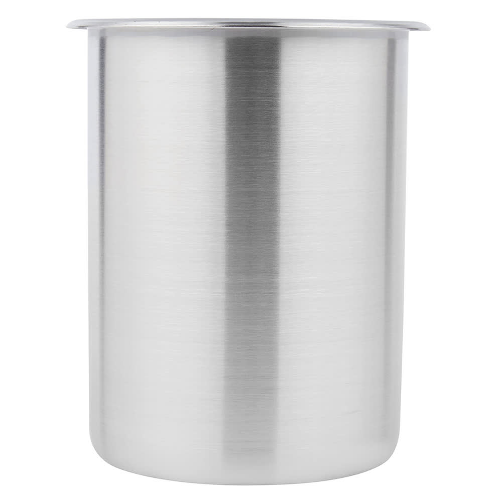 The Vollrath 78720 bain marie is made of stainless steel with a satin finish, providing a durable and attractive component to storage on salad bars. Great for holding sauces and condiments, this unit is placed in a bath of warm water that keeps it hot without scorching its contents. It holds 2 quarts of product and fits into a 5-inch-wide steam table opening.