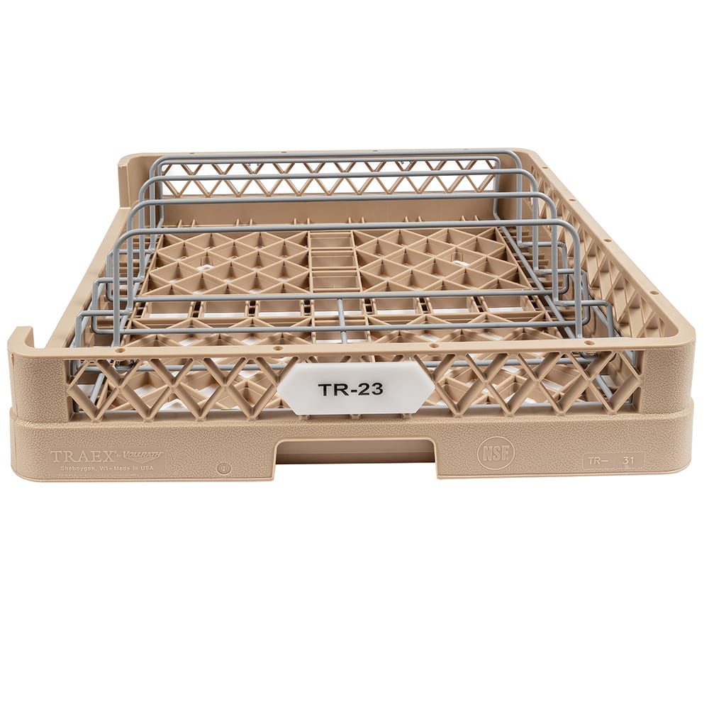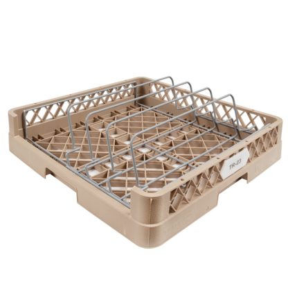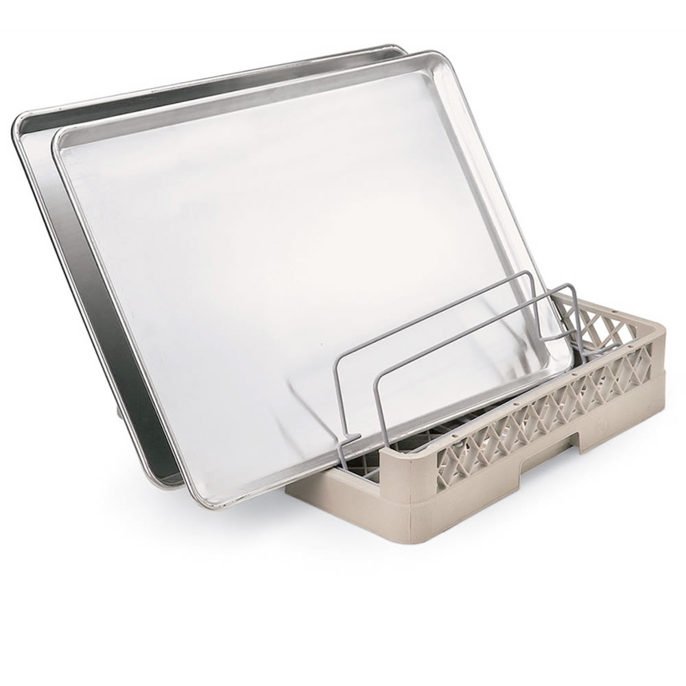 Rack-Master Dishwasher Sheet Pan Rack, full size, open end, 19-3/4″W x 19-3/4″D, 2-1/4″ space between dividers, accommodates (3) full size bun pans at angle, designed to fit standard height conveyor dish machines, co-polymer plastic with chrome plated wire insert , NSF, Made in USA