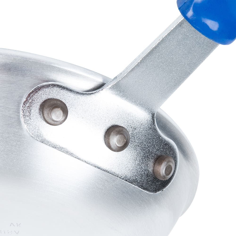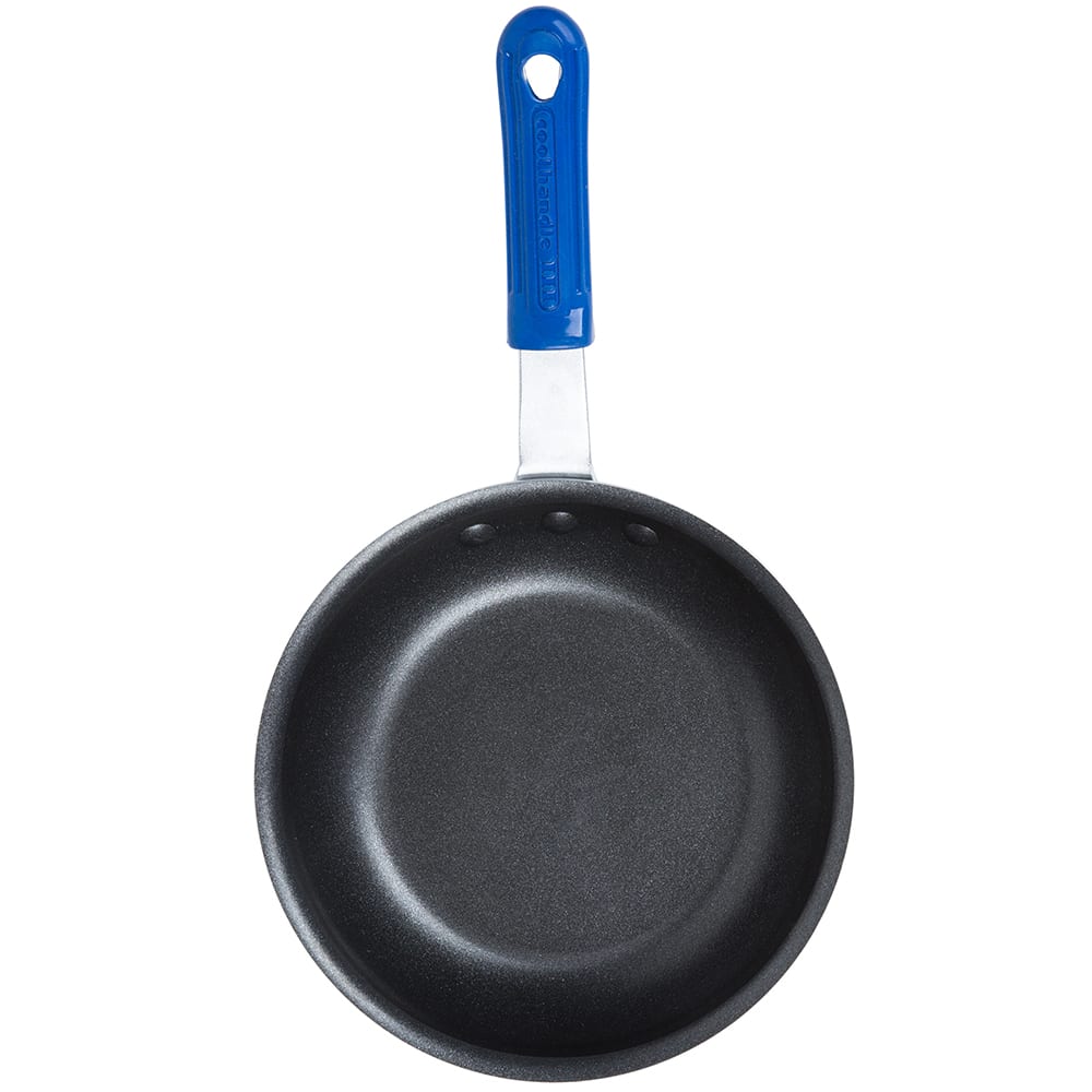 The Vollrath Z4007 Wear-Ever frying pan’s CeramiGuard II nonstick coating can endure contact with metal utensils. The Cool Handle sleeve is made of insulated, heat-absorbent silicone that can withstand stovetop and oven temperatures as high as 450 degrees Fahrenheit. This sleeve can also be removed and replaced when it wears down over time. The Vollrath Z4007 frying pan is made of an aluminum alloy that protects against warping and denting. Its EverTite rivets give the handle a sturdy connection to the pan.