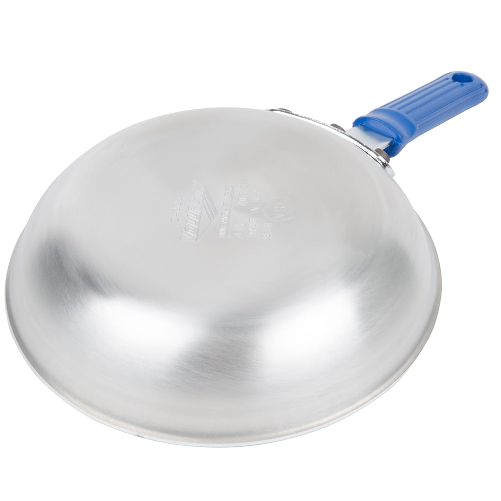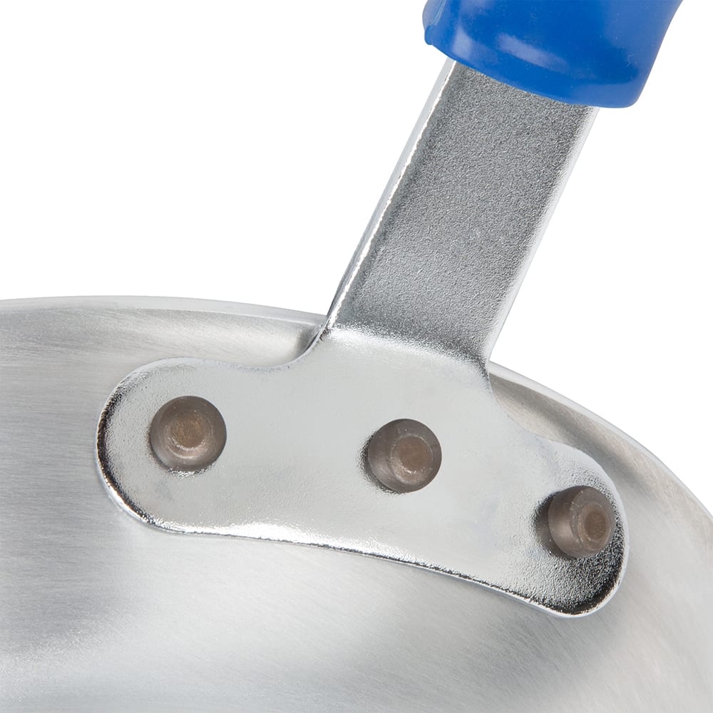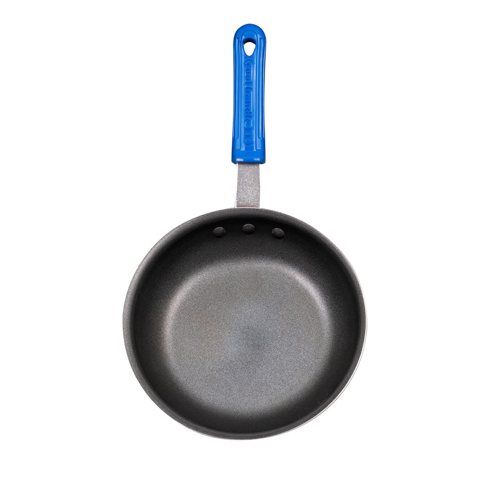 The Vollrath Z4008 Wear-Ever frying pan has EverTite rivets that attach the handle to the pan. This cookware is made of aluminum alloy, which protects against dents and stains. Insulated to prevent heat transfer, the silicone Cool Handle sleeve can endure temperatures as high as 450 degrees Fahrenheit and can be removed and replaced when needed. The Vollrath Z4008 frying pan has a CeramiGuard II nonstick coating that is PFOA free, releases cooked-on food, and can tolerate metal utensils.