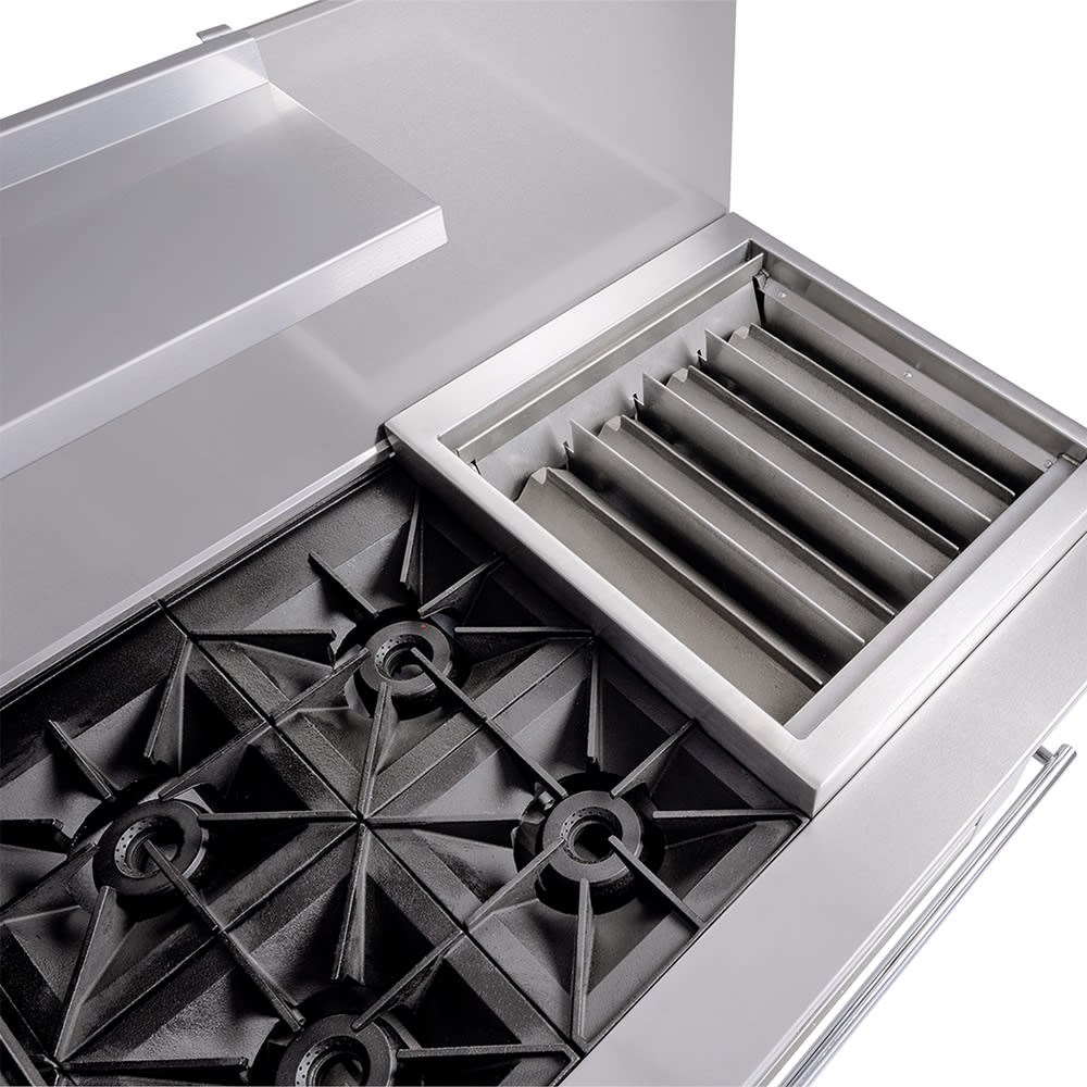 • Rear grates measure 12 in. x 141/2 in. to hold stock pots and large pans