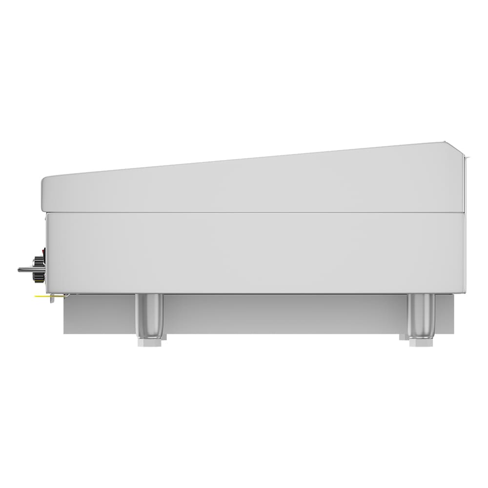 Embedded thermostats provide precise control of cooking temperatures across the Vulcan 936RX-30 36-inch gas griddle’s multiple cook surfaces. A wraparound splatter guard contains grease to the cooking area of the griddle, and excess grease can be simply scraped into the grease gutter on the end of the griddle. For streamlined storage, the gutter is connected to a welded chute that safely moves grease into the 6-quart grease shelf, and to provide stability, the griddle is supported by 4-inch adjustable legs.