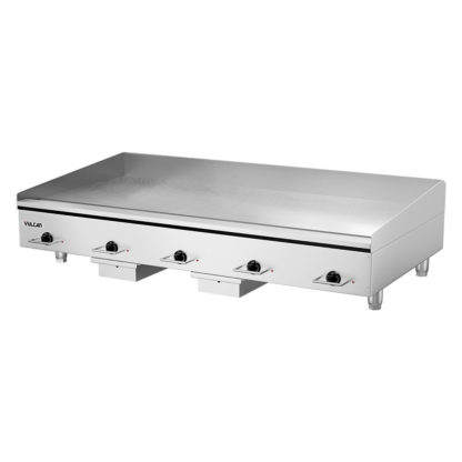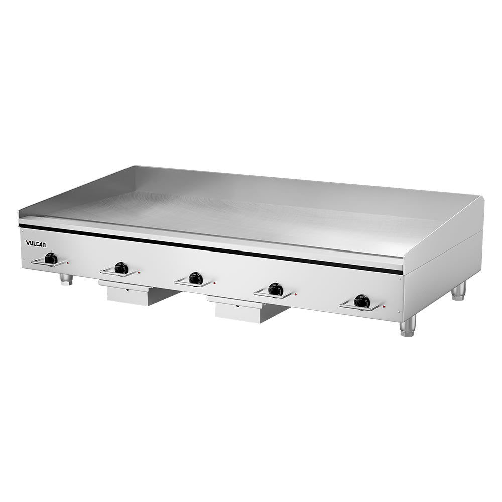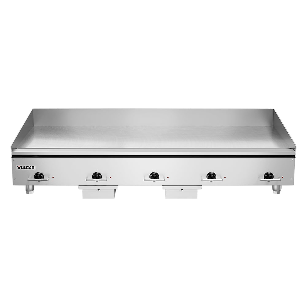Heavy Duty Griddle, electric, countertop, 60″ W x 24″ D cooking surface, 3/4″ thick polished steel griddle plate, bottom mounted snap action thermostat every 12″, low profile, stainless steel front, sides, front top ledge with “Cool Bullnose”, (2) front grease trough, 4″ back & tapered side splashes, 4″ adjustable legs, CSAus, NSF