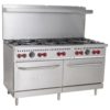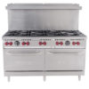 SX Series Restaurant Range, natural gas or liquid propane, 60″, (10) 28,000 BTU burners with lift-off burner heads, (2) standard ovens, stainless steel front, sides, backriser & high shelf, fully MIG welded frame, 6″ adjustable legs, 340,000 BTU, ETL-Sanitation