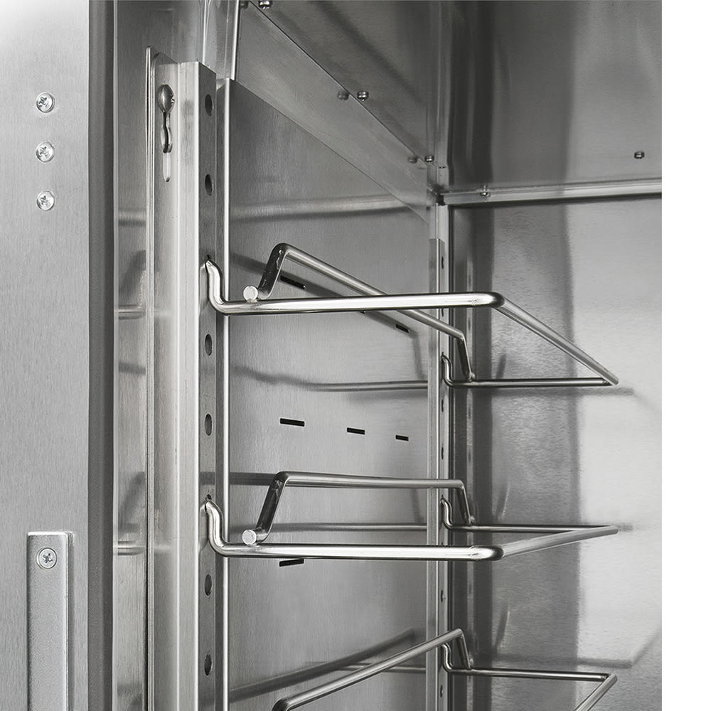 - Can hold (5) 18-in. x 26-in. sheet pans or (10) 12-in. x 20-in. x 21/2-in. pans