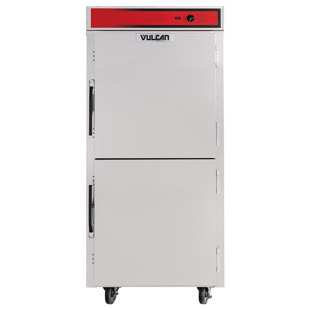 Holding/Transport Cabinet, Pass-thru, Mobile, capacity (13) 18″ x 26″ x 1″ or (26) 12″ x 20″ x 2-1/2″ pans, forced air blower, side mounted push handles, recessed control panel, analog thermometer ambient to 190F, includes (10) pair of universal tray slides adjustable 1-1/2″ OC, 20 gauge stainless steel interior and exterior, 5″ casters, cULus, UL EPH Classified