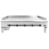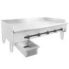 Quickly cook your most popular breakfast, lunch, and dinner entrees with this natural gas heavy-duty 60″ countertop griddle. The thermostatic controls provide infinite heat adjustment for each burner, and the removable stainless steel drip drawer lets you easily clean up after use. The griddle surface is a 3⁄4″ thick, durable plate that distributes heat evenly and preheats quickly.