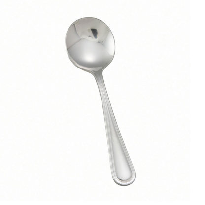Because of its extra heavy-weight construction, the Winco 0021-04 bouillon spoon is solid and durable for frequent use. It is made of 18/0 stainless steel, a corrosion-resistant material that contains no nickel, so it is economical and safe for those with sensitive teeth. With contoured lines, the Continental design is simple, meaning it is an ideal choice for eating soups and stews in fancy establishments.