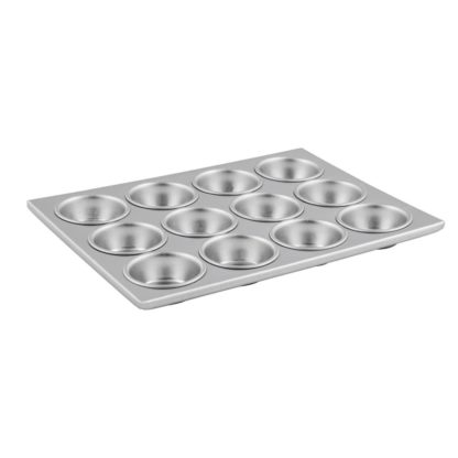 Muffin Pan, (12) 3 oz. 2-3/4″ dia. x 1-1/8″H cups, 14″L x 11″W pan, rectangular, aluminum