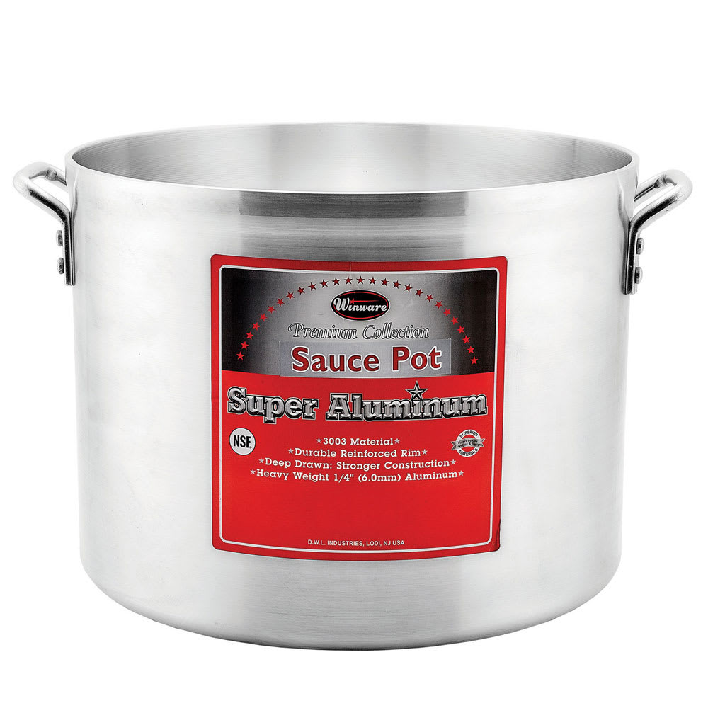 Sauce Pot, 40 qt., 16″ dia., 11-3/4″H, round, 6mm thick, riveted handle, reinforced rim and bottom, extra-heavyweight, 3003 aluminum, NSF