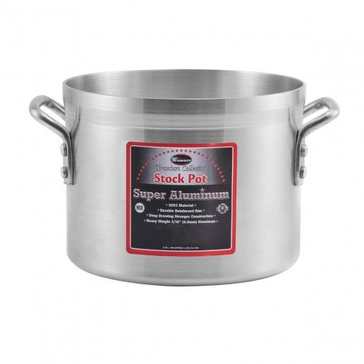 Thanks to its 4.0 mm thick aluminum construction, this pot is exceptionally durable and guarantees excellent heat distribution. Featuring a tall, narrow shape, this 20 quart stock pot keeps ingredients fully submerged when simmering soup or boiling vegetables for maximum flavor infusion. Due to its heavy weight reinforced aluminum construction the pot is not only warming up the ingredients really fast, but is also very long lasting. The stockpot with 20-quart capacity was particularly manufactured for advanced use in preparing sauces, stocks and beverages.
