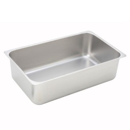 The Winco C-WPP water pan should be placed beneath a full-size food pan to hold a shallow layer of water that turns to steam, efficiently warming food in the pan above. It is rectangular, sports a flat edge, and is made of sturdy stainless steel that resists scarring, bending, and rusting.