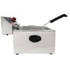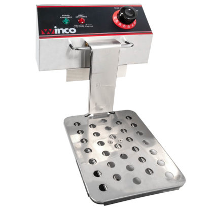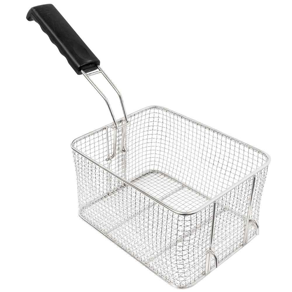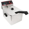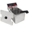 The Winco EFS-16 countertop electric fryer has one basket for cooking French fries, onion rings, and mozzarella sticks. It includes a cover, so when the fryer is inactive, its 16 pounds of oil can be protected from bacteria. The basket has a safety handle with grips to secure it in the user’s hand during transport, preventing food from dropping on the floor. For cleaning purposes, the stainless steel well and power head are removable for deep scrubbing.