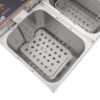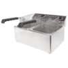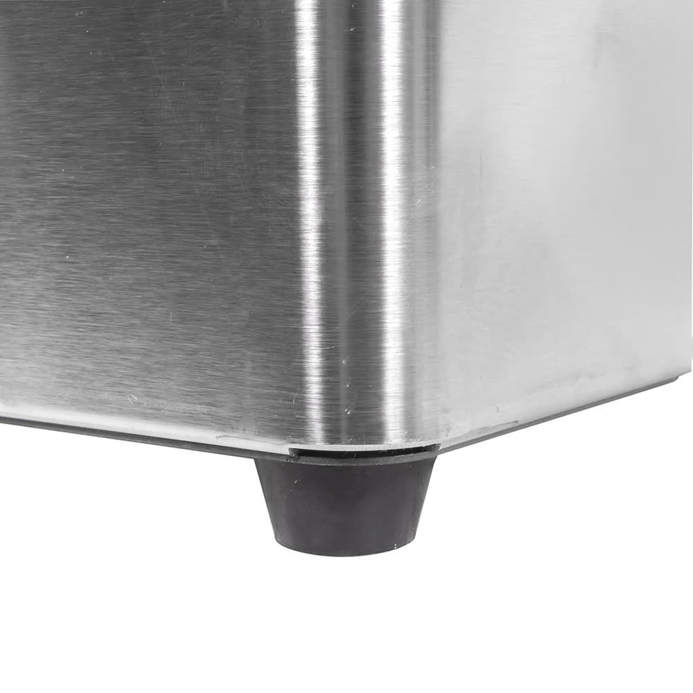 The two wells in the Winco EFT-32 countertop electric fryer hold 16 pounds of oil each. They both have one fry basket, ideal for creating onion rings, French fries, and fried chicken. These baskets include a handle with ridged grips for secure transport to ensure food doesn’t drop and spill. To clean the unit, the wells and power heads are removable, and the stainless steel wells can be wiped clean. When the fryer isn’t active, its wells can be shielded by the included covers to avoid bacteria in the oil.
