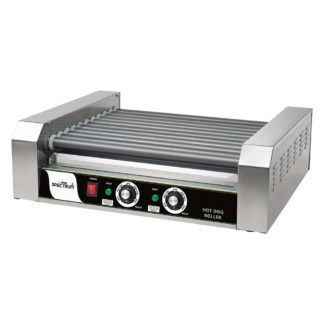 Spectrum RollsRight Hot Dog Grill, roller type, capacity: 12 hot dogs, multiple power levels, (2) independent thermostatic heat controls (front & rear), teflon non-stick coated rollers with sealed ends, heavy duty sealed motor, bike chain & sprocket drive assembly, heating elements in each roller, re-settable fuse, stainless steel full size drip tray & body, non-skid rubber feet, 110v/60/1-ph, 700 watts, 6.3 amps, NEMA 5-15P, cETLus, ETL