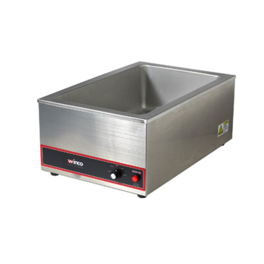 The Winco FW-S500 countertop warmer is durable and has intuitive operation. Fit for high-volume establishments, its stainless steel construction resists rust, dings, scratches, and it facilitates cleaning if food dribbles onto the sides. The interior can hold one full-size food pan, keeping it warm and ready to serve. It has a knob control with three temperature settings of 140, 170, and 200 degrees Fahrenheit.