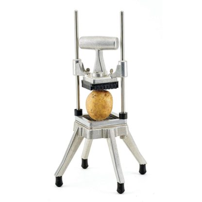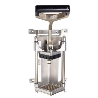 Because the blade in the Winco HCD-375 vegetable chopper is made of stainless steel, it will not break while chopping onions, potatoes, and tomatoes in high-volume settings. To further provide durability, the frame is made of heavy-duty cast aluminum. This unit is mounted on nonskid feet, preventing it from sliding on the countertop while the user is slicing.
