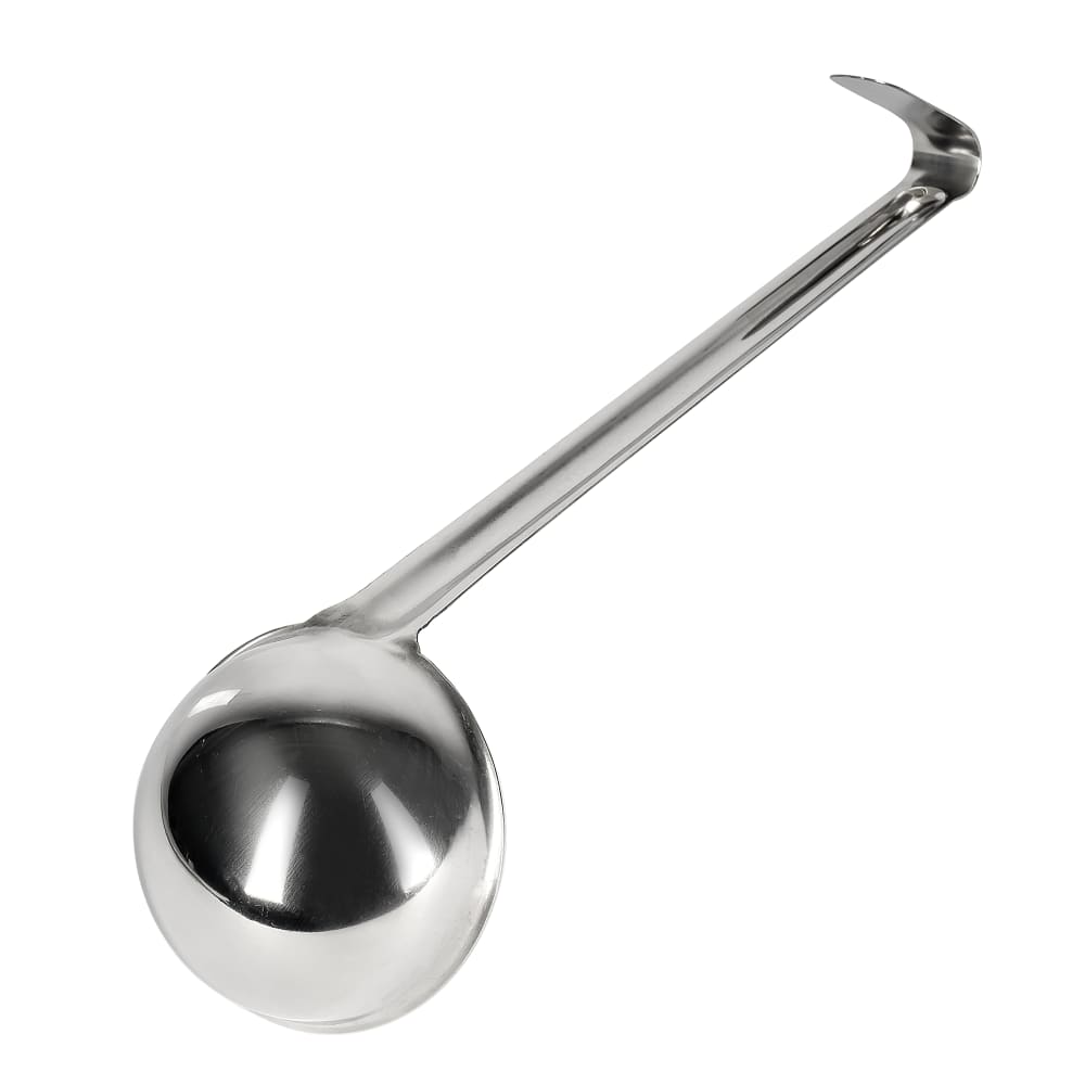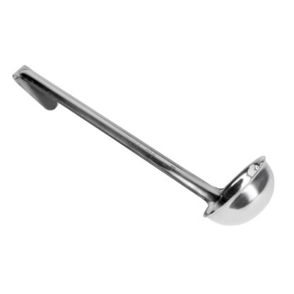 The Winco LDI-4 ladle is perfect for pouring out 4-ounce servings of stew or soup. Its handle is 121/4 inches long, so it can reach into tall containers while its long, curved handle hooks onto the rim of a pot. This tool is constructed of a single piece of stainless steel, ensuring it remains strong and can be cleaned quickly.