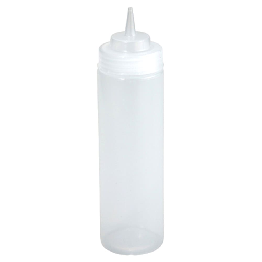 The Winco PSW-16 squeeze bottle has a wide-mouthed design that prevents leaks in order to reduce messes. As much as 16 ounces of product can be stored in the bottle and it is transparent, so users can see what’s inside it. Its top is open, so users aren’t obligated to cut it.