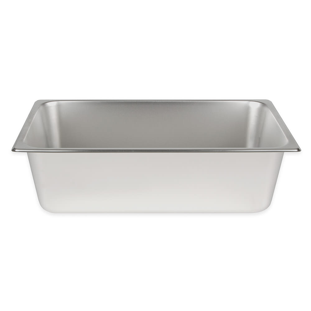 The Winco SPF6 steam table pan is a full-sized piece that holds plenty of food in steam tables and food bars. It’s made of standard-gauge stainless steel that’s durable enough to withstand frequent use in busy kitchens. Its straight sides are angled slightly downward, funneling product juices or sauces to the bottom of the pan.