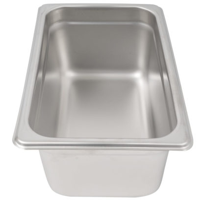 Steam Table Pan, 1/4 size, 10-5/6″ x 6-5/16″ x 4″ deep, 25 gauge standard weight, anti-jamming, 18/8 stainless steel, NSF