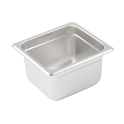 Steam Table Pan, 1/6 size, 6-7/8″ x 6-5/16″ x 4″ deep, 23 gauge, anti-jamming, 18/8 stainless steel, NSF