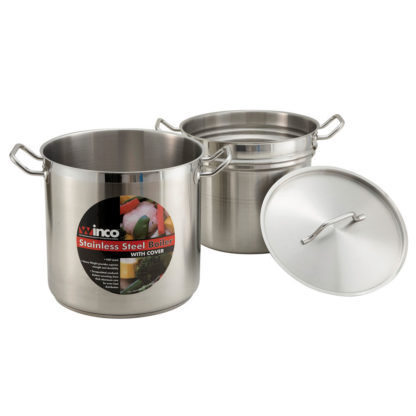 Double Boiler, 20 qt., 11-7/8″ dia. x 11-1/2″H, round, with cover, induction ready, tri-ply heavy duty bottom with aluminum core, 18/8 stainless steel, NSF
