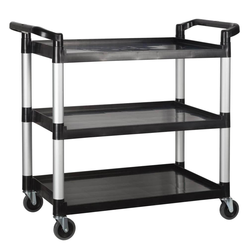 Utility Cart, 3-tier, 40-3/4″W x 19-1/2″D x 37-3/8″H, 400 lb capacity, plastic, black, KD