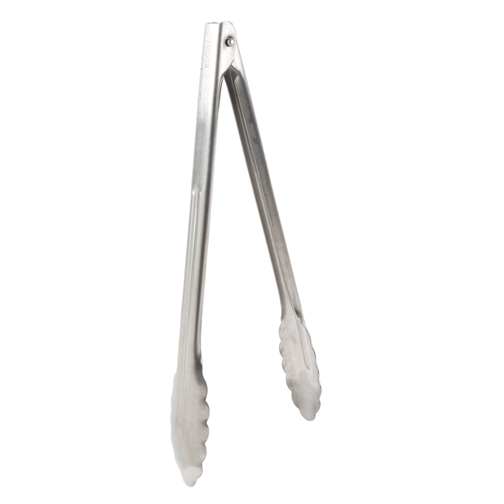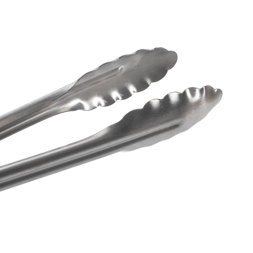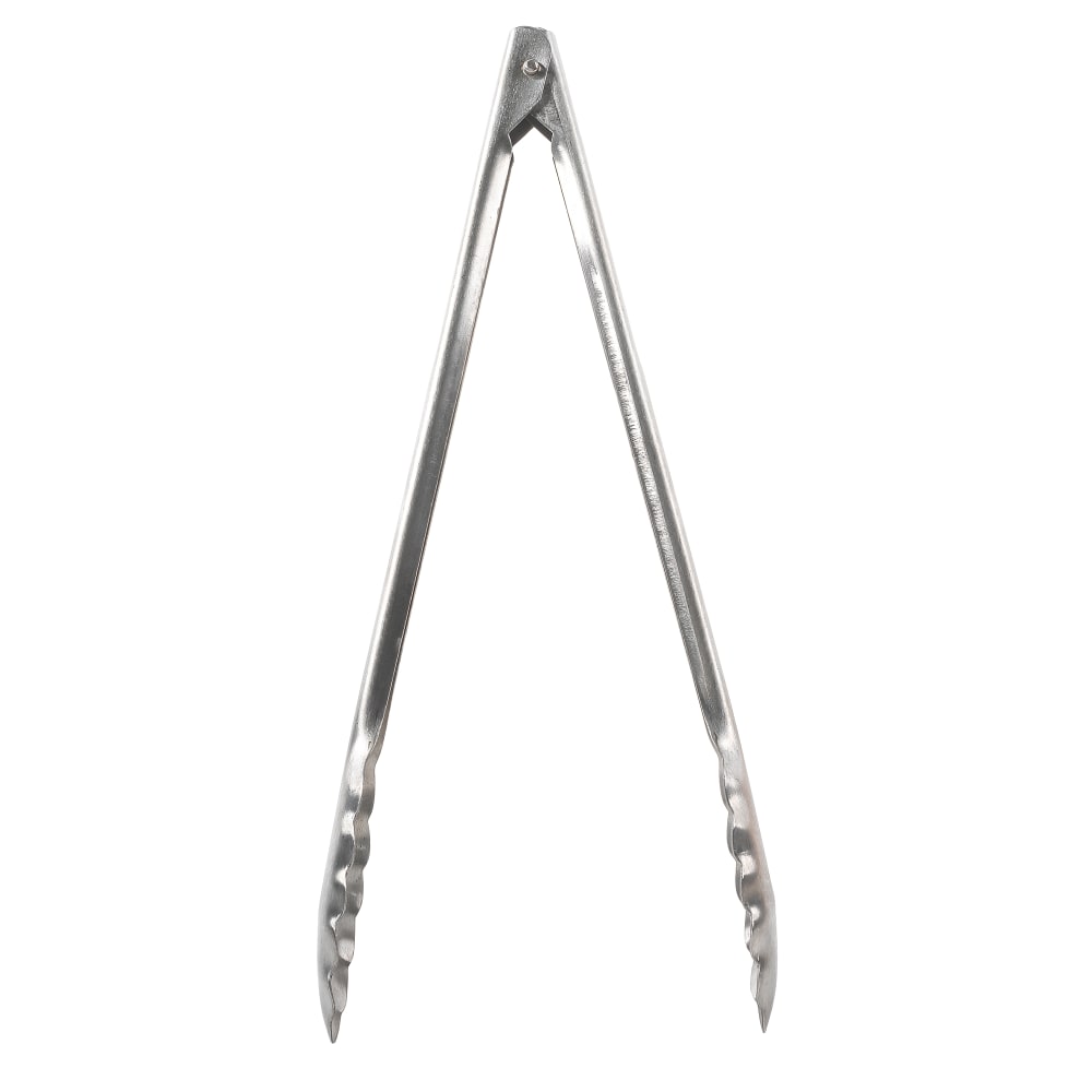 Utility Tongs, 12″, coiled spring, scalloped edge, heavy weight 0.9 millimeter stainless steel