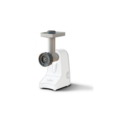 The WonderMix Grinder includes a medium (4.5mm) cutting disk. The tray measures 5″ x 4″ and the vertical feed tube is 1.5″ inside diameter. All metal parts are stainless steel.
